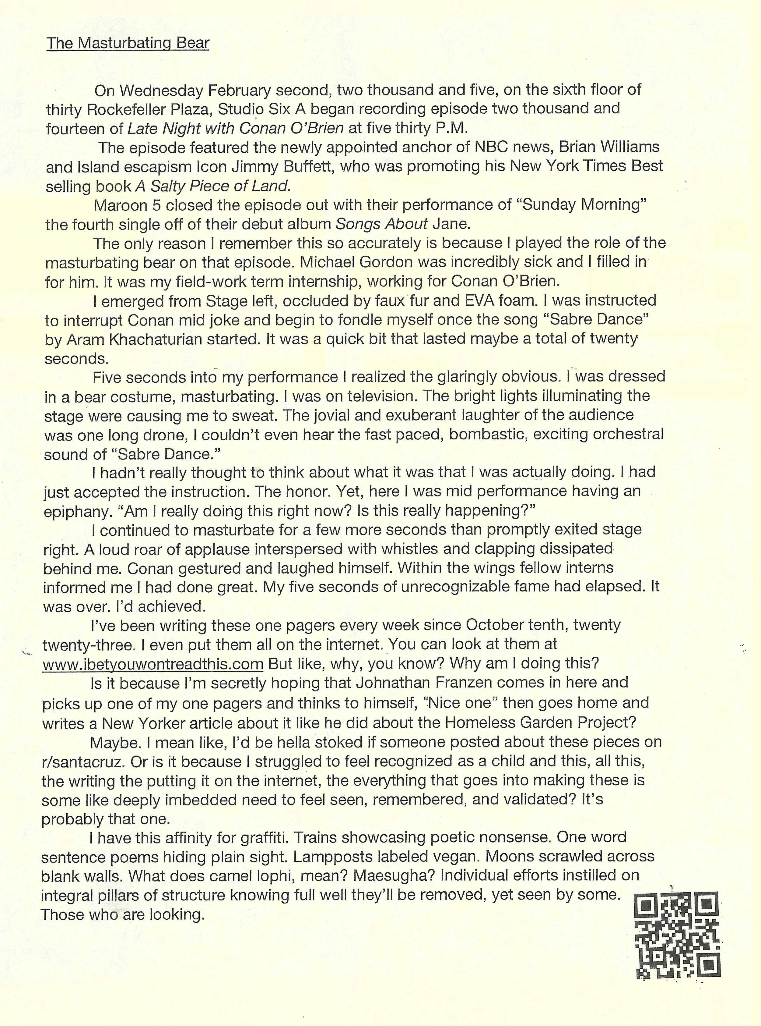 I Bet You Won’t Read This is a double sided piece of paper distributed weekly at Zachary’s Restaurant in Santa Cruz, CA.